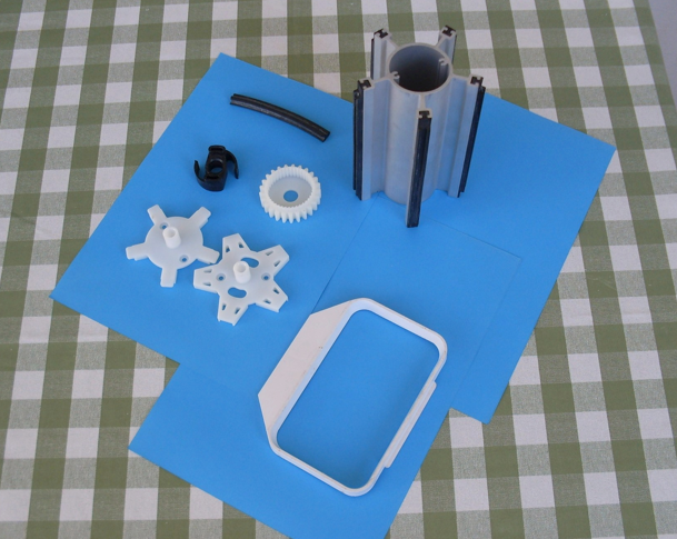 Det här är ett urval av detaljer som jag har konstruerat. Det är formsprutade plastbitar som haft föregångare i gjutna bitar eller framtagna med skärande bearbetning ur t.ex stång- och plattmaterial.